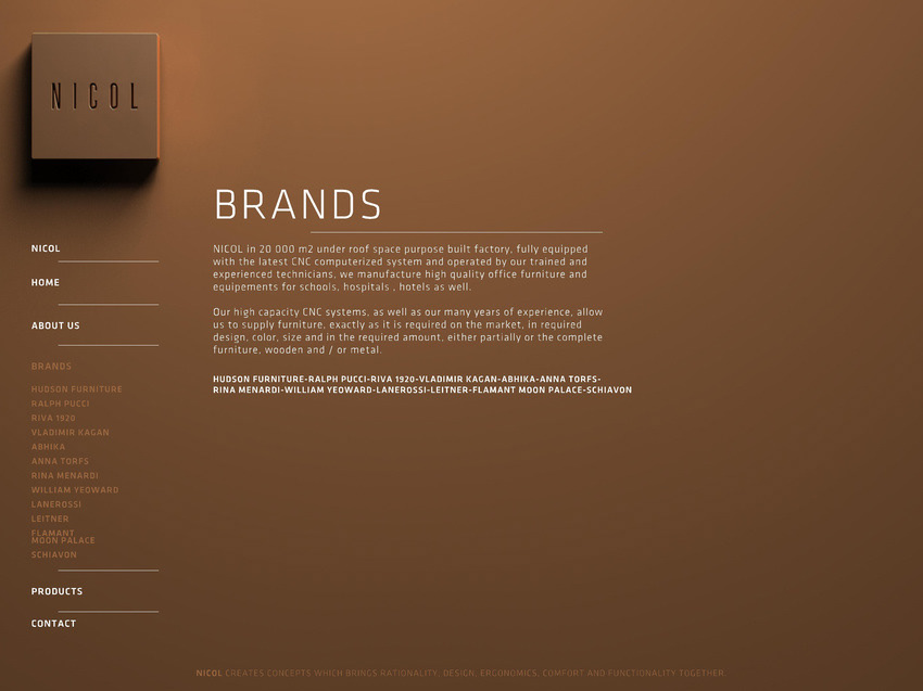 Yurt dışından birçok tanınmış tasarımcının imzasını taşıyan mobilya ve aksesuarları tek çatı altında toplayan Nicol için kurumsal kimlik, davetiye ve ilan çalışmaları, web sitesi tasarımı